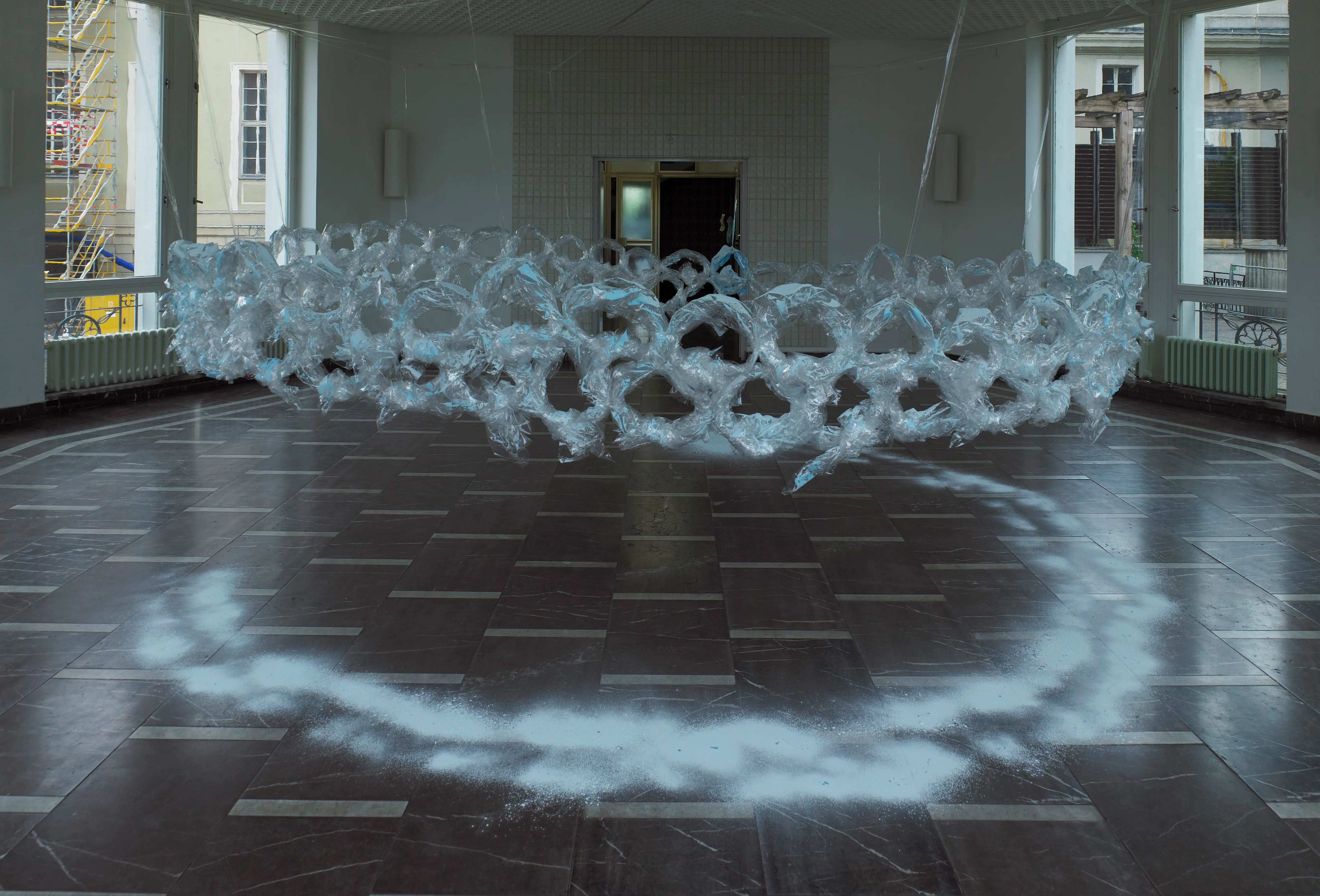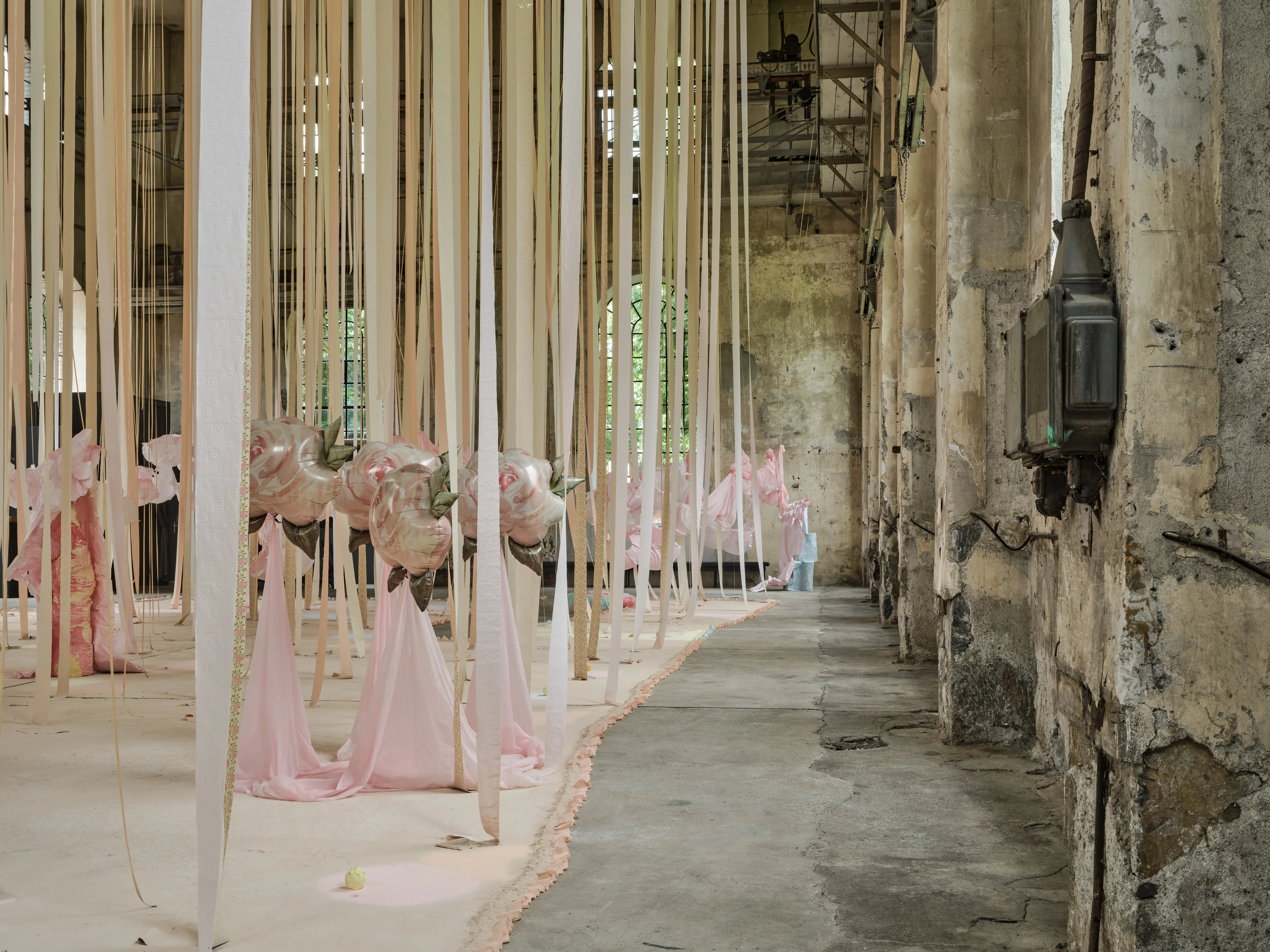 Karla Black was born in 1972 in Alexandria, Scotland, and lives and works in Glasgow. For the last twenty years, she has created abstract and immersive sculptures through her experimentation with unconventional materials. These monumental yet ephemeral and seemingly weightless chalked paper works continue Black’s investigation of materiality and texture, and the emotions they transmit.